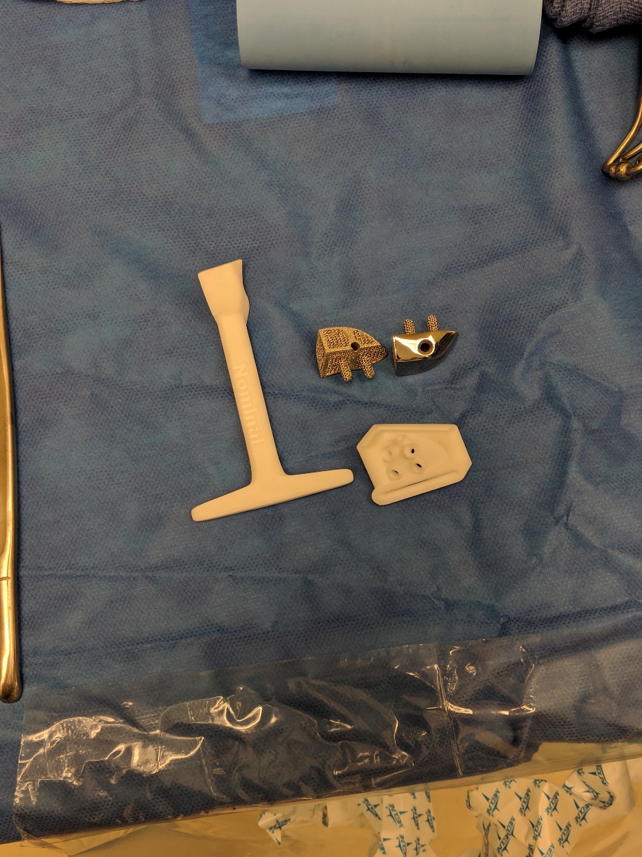 St Petersburg, FL – On Thursday, January 18, 2018 Alexander Orthopaedic Associates (AOA) foot & ankle surgeon, Dr. Adam Perler performed the state’s first ever successful custom 3D printed partial (talus) ankle replacement. His patient, a healthy 36-year old woman, was living with severe and debilitating pain in her ankle following an injury that occurred at her job almost two years ago. The injury, which was initially diagnosed as a simple ankle sprain, caused significant damage to the cartilage on the talus located on the inner aspect of her ankle. Despite two prior surgical repair attempts to address it with an ankle scope and microfracture (traditional treatment of a defect in the cartilage) there was no improvement to the area leading to progressive posttraumatic arthritis of that part of the ankle.